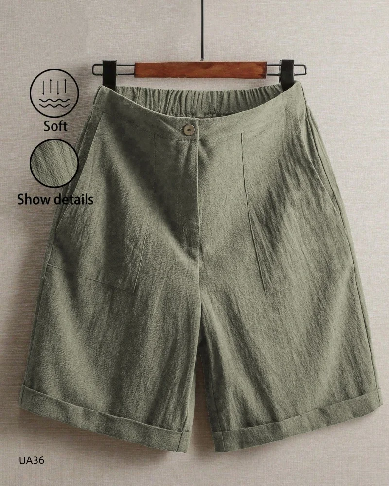 Women's Casual Cotton Linen Knee-Length Shorts Summer Elastic Waist Bermuda Shorts with Pockets female street wear Hot sell